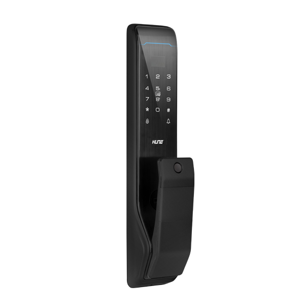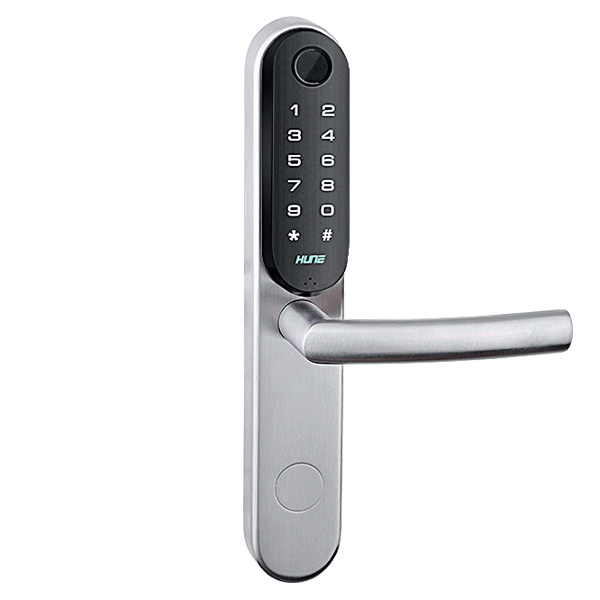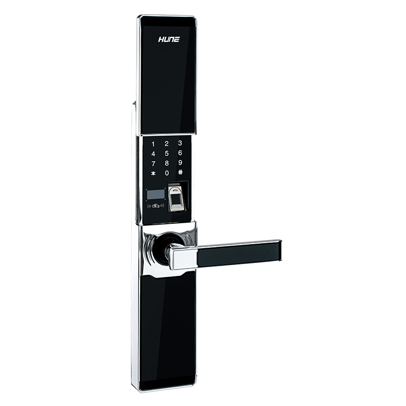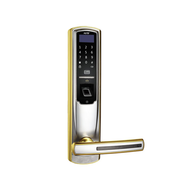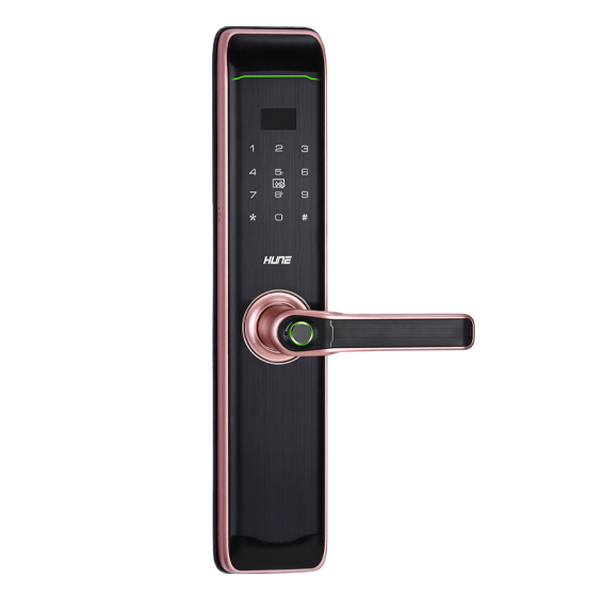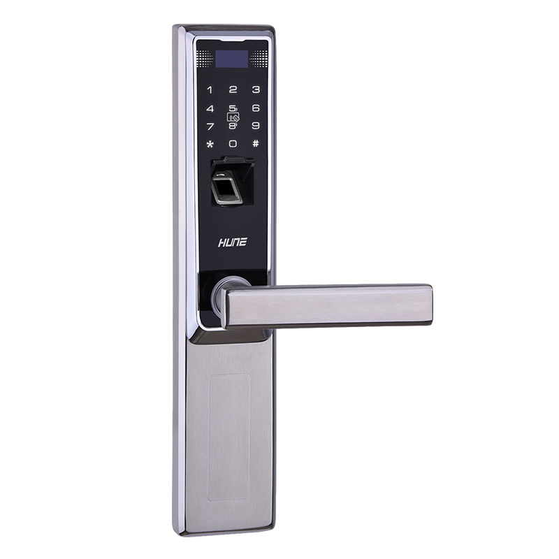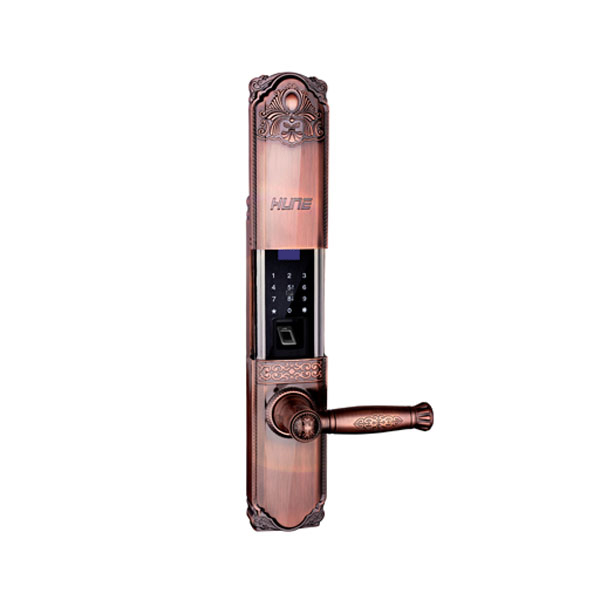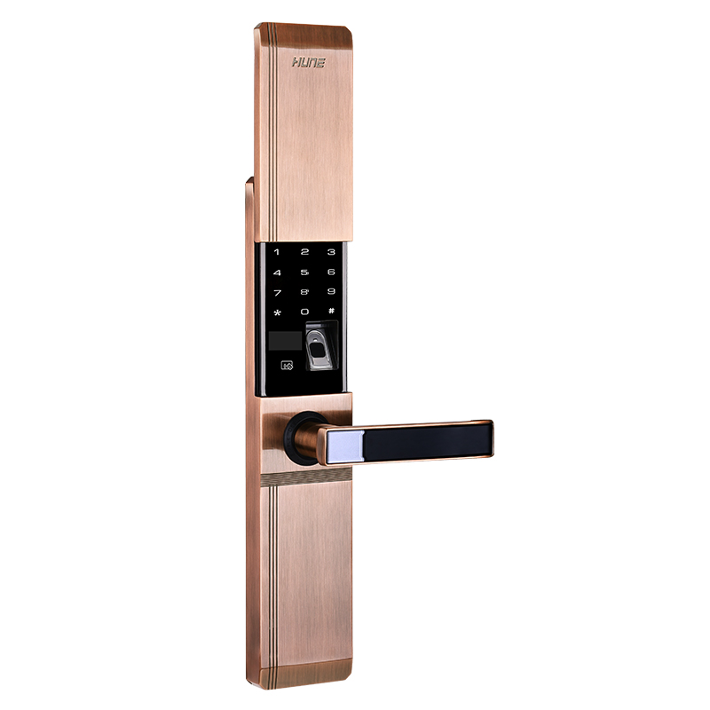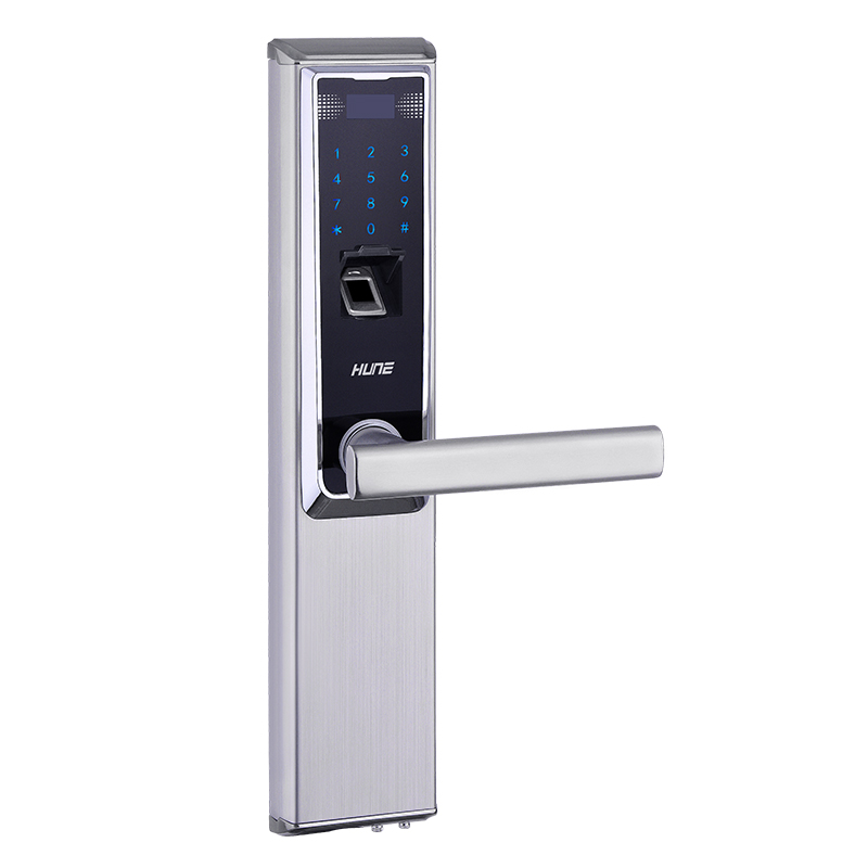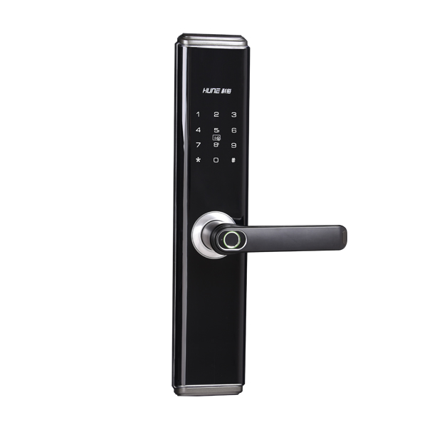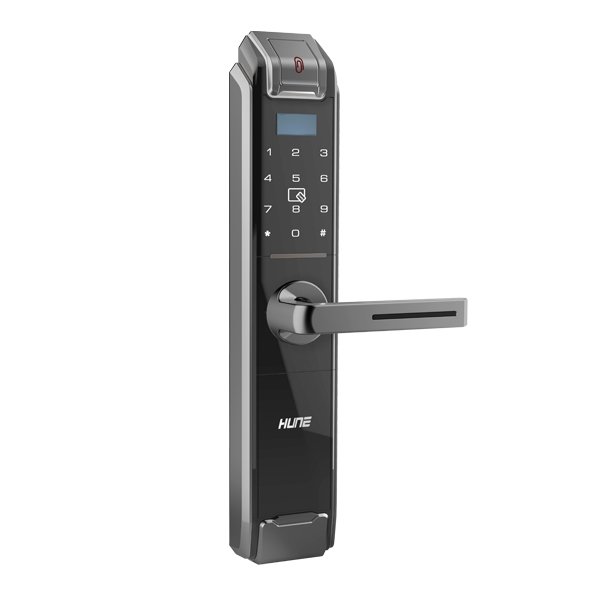 HUNE keep launching latest technical products to meet the market. Intelligent fingerprint door locks are popular gradually, compared with the traditional mechanical locks, fingerprint door locks are more convenient and safer. HUNE fingerprint door lock for home have higher technical content, it is a safe, convenient and technologically advanced compound locks. Smart Home and Smart City projects are all created for meeting the demands of people’s demand of a safe but simple life, and it depend a lot in AI and IOT technology. HUNE keeps launching latest technical products to meet the market, such as blue tooth fingerprint door lock, WIFI fingerprint door lock and IoT fingerprint door lock. Client just need to install APP, then you can control the smart door lock remotely. You can keep track of lock, and truly experience intelligent life. HUNE blue tooth or WIFI lock can be integrated in. Fingerprint door lock is the perfect crystallization of computer information technology, electronic technology, mechanical technology and modern hardware technology, that take human fingerprint as the identification carrier. Fingerprint door Lock is generally composed of electronic identification control and mechanical linkage system.